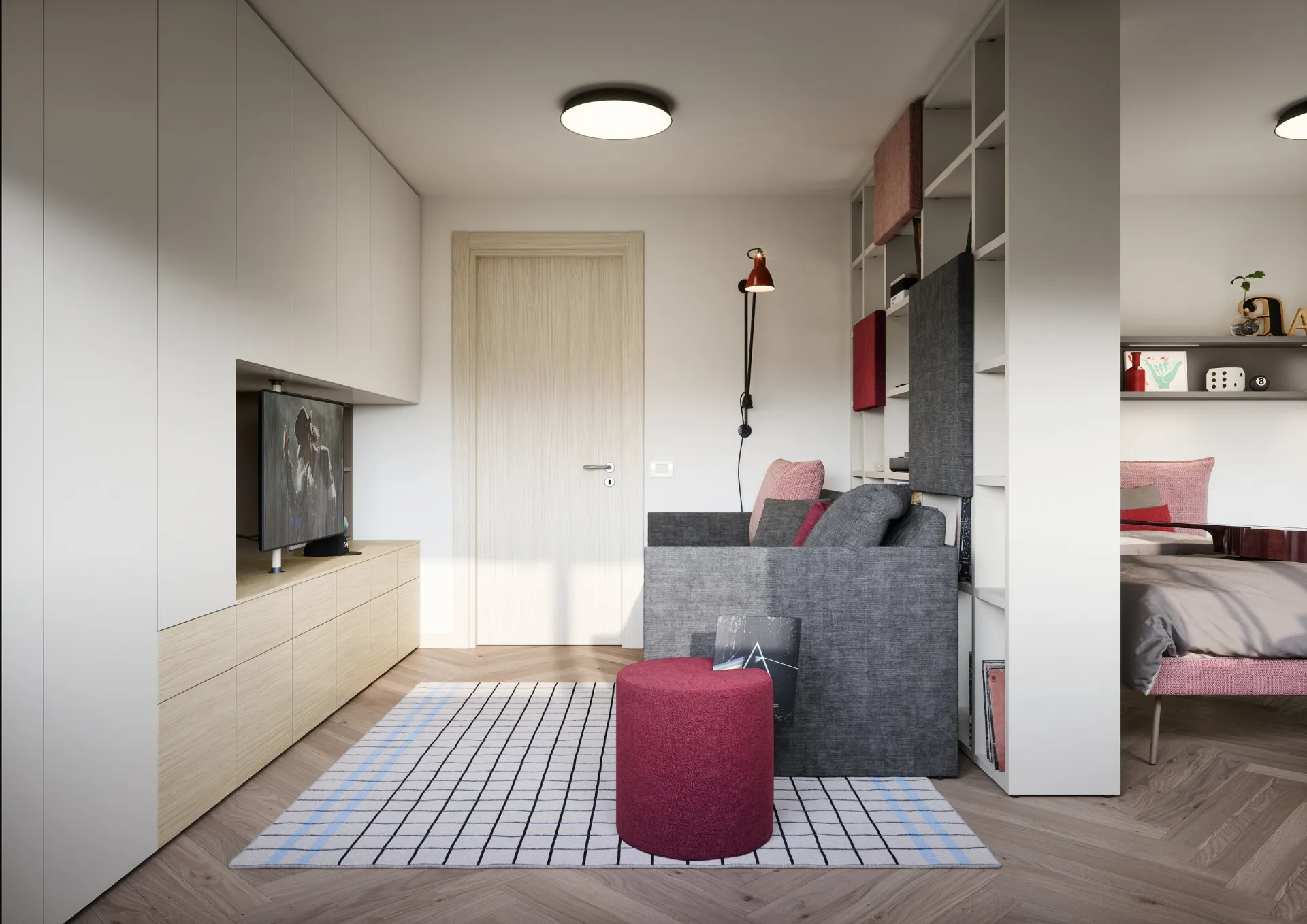 Camerette componibili per ragazzi: scopri il modello in melaminico Letto a Divano di Nidi per stanzette moderne.