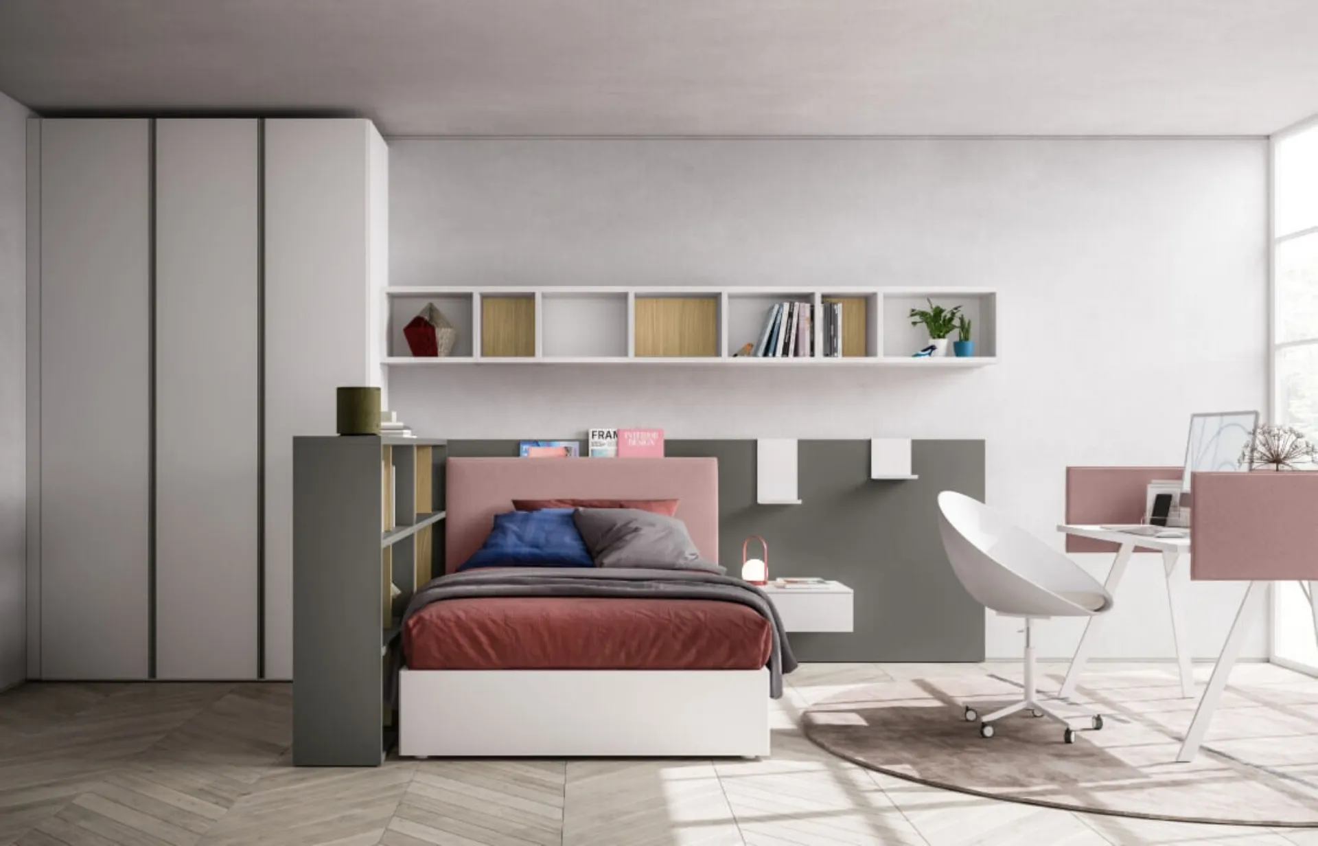 Camerette componibili per ragazzi: scopri il modello in melaminico SpaceMakers young SM2551 di Zalf per stanzette moderne.
