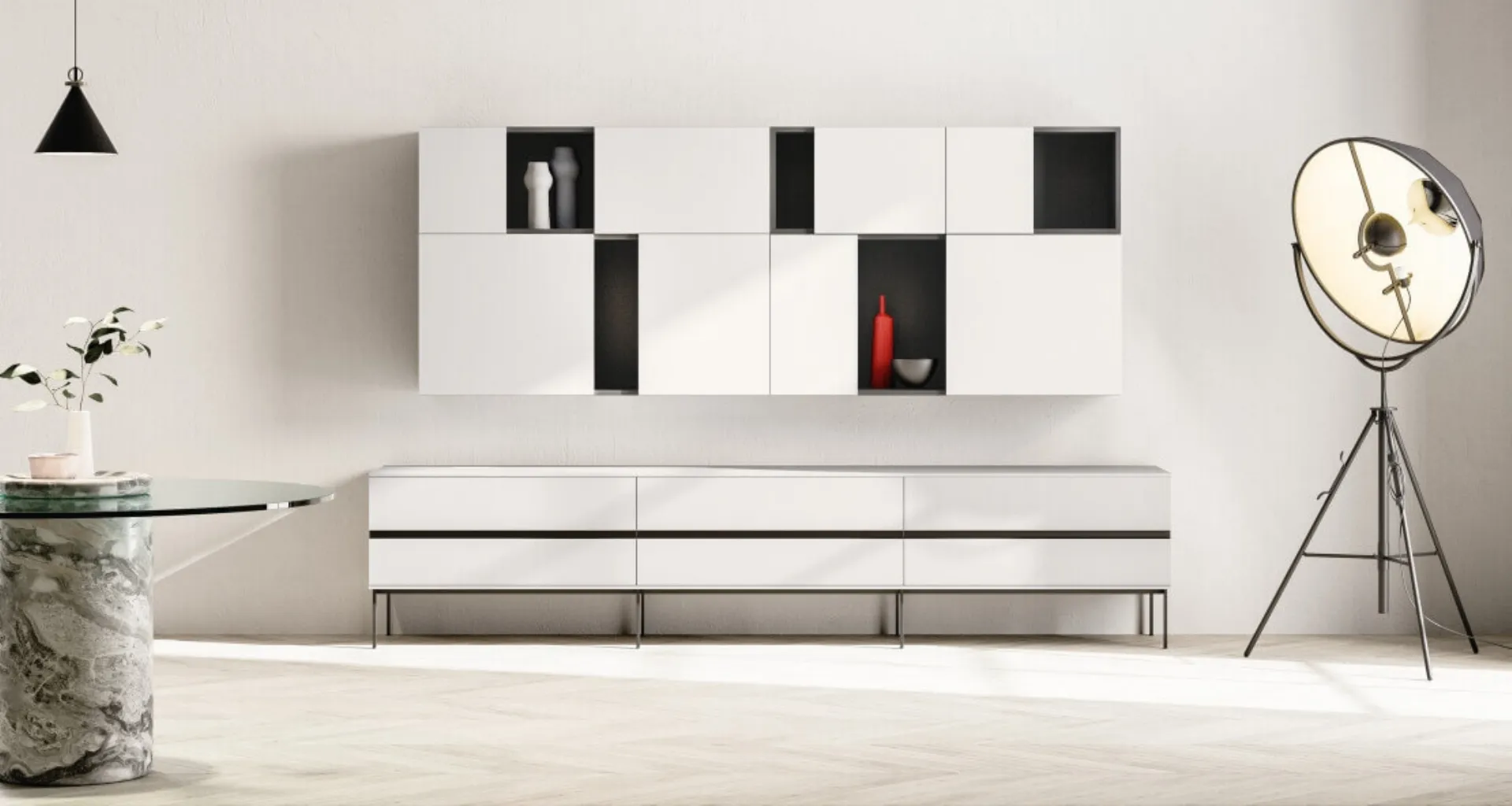 Pareti attrezzate e mobili giorno Zalf: clicca e scopri il modello SpaceMakers day Grip e potrai impreziosire stanze moderne di ogni genere.