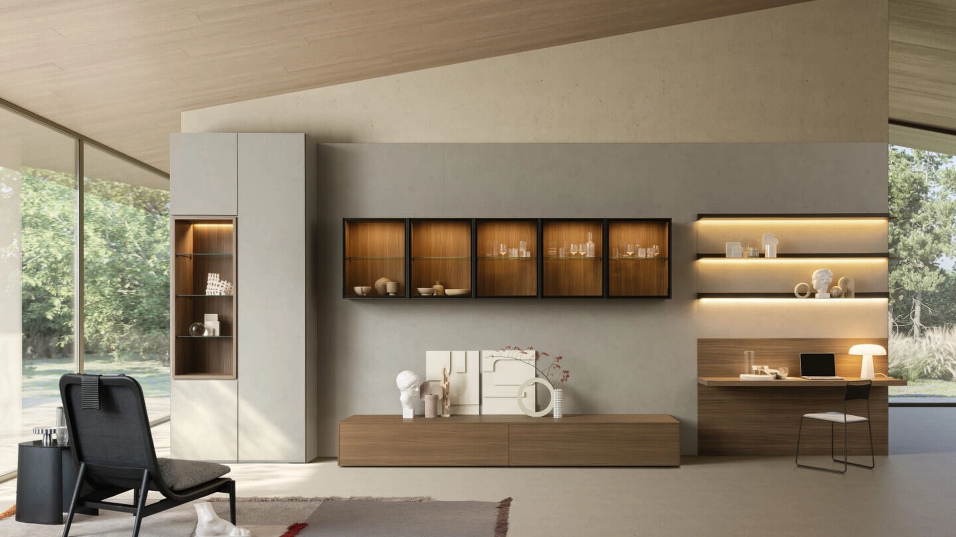 Se cerchi arredi salvaspazio e realizzabili su misura per te, contattaci e scopri di più sull'Arredamento Casa delle migliori marche. Anche in un soggiorno abbastanza piccolo, questo tipo di arredo riesce a ottimizzare gli spazi ottimizzando ogni angolo e assicurando componibilità personalizzabile tipica delle soluzioni moderne. Un po’ librerie, un po’ mobili contenitori ed espositori: le Pareti Attrezzate sono ideali per organizzare un luogo operativo e pratico. La Parete Attrezzata SpaceMakers day SM2514 di Zalf in foto, con finitura in melaminico, risolve le più particolari problematiche abitative di spazio e stile senza rinunciare alla ricerca stilistica.