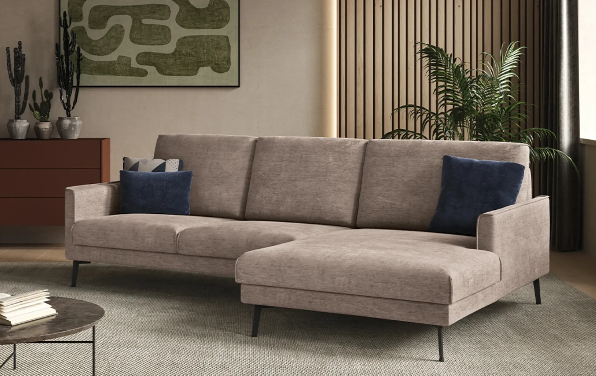Il catalogo Rigosalotti presenta svariate possibilità per arredare l'habitat all'insegna di praticità e estetica, mettendo al centro il tuo comfort. Se vuoi divani e poltrone con penisola come il modello in foto, caratterizzato dai volumi che invitano a passare i tuoi momenti di riposo. La linea di divani della marca in questione propone svariate possibilità peculiari per arredare il soggiorno all'insegna di praticità, comfort e stile. Divano con penisola Kriss di Rigosalotti: crea uno spazio intimo e confortevole in spazi design di gran classe.